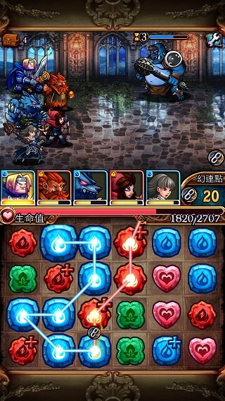 寓言戰記》採用的串消規則分成了第一階段(手滑階段)的八方向串連與第二階段(自動階段)的四方向串連,串消連擊效果除了傷害加成外,也多了「幻連點」回饋加值。