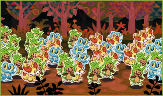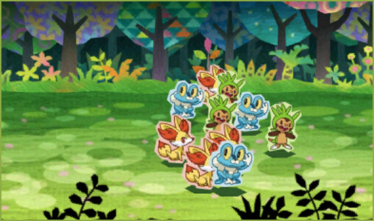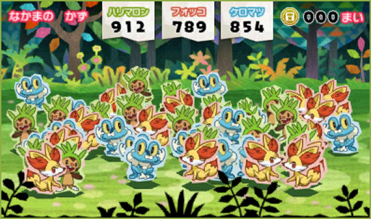 盜賊與1000 匹神奇寶貝》是款活用 N3DS 內建之「瞬間交錯通信(すれちがい通信)」功能的遊戲,玩家只要與同樣下載了本遊戲的其他同好進行瞬間交錯通信,就可以讓自己的針栗鼠(ハリマロン)、小火狐(フォッコ)與小水蛙(ケロマツ)夥伴增加,最多可累積到 1000 匹。接著指揮這群數量龐大的神奇寶貝軍團來對抗「盜賊團(とうぞく団)」,以奪回被盜走的祕寶。