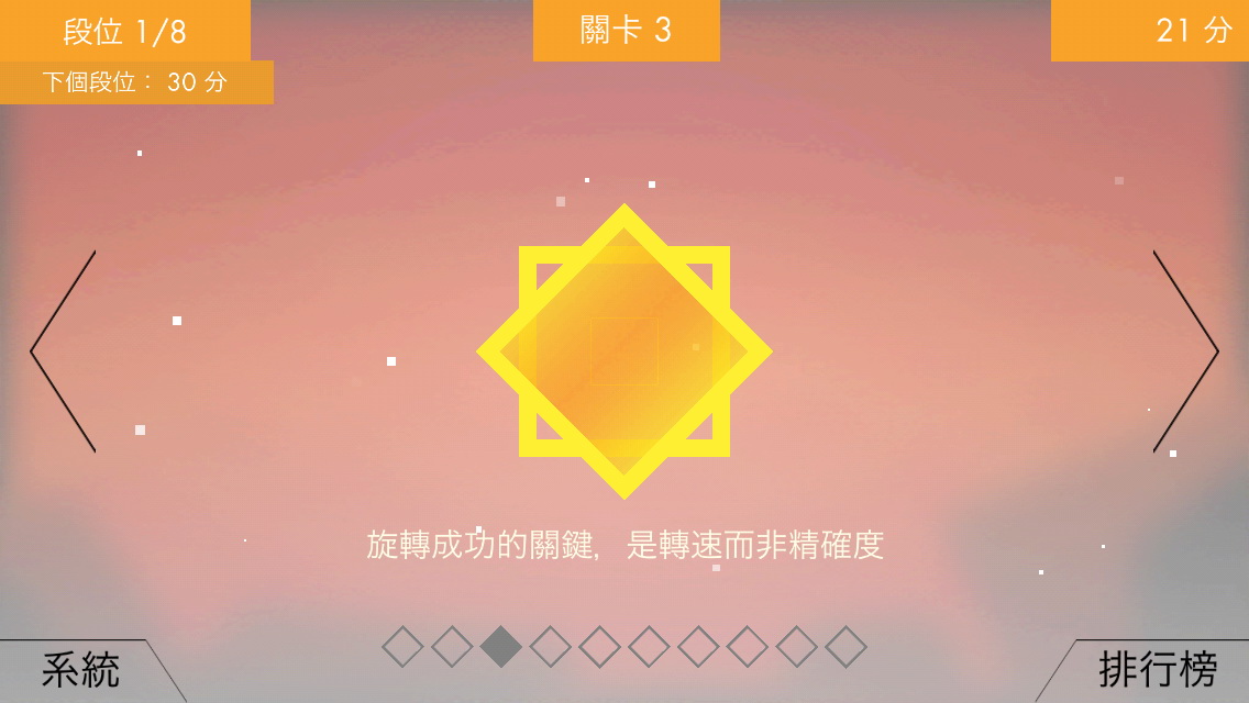每次過關還可獲得經驗值,滿足一定條件就能解開後續的關卡,由於實際闖關中,背景橫線的掃描速度會越來越快,這也將使得遊戲節奏不斷加速而越來越刺激!加上各種不同的操作方式要在第一時間中辨識出該格必須對應哪個位置、又要如何操作消除,都相當考驗玩家的瞬間反應。