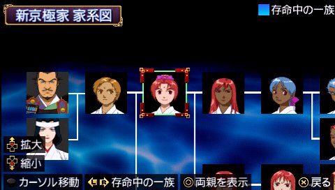 在「家系圖」中可確認在戰鬥中最活躍的一族,以及最長壽的一族等部門的「歴代勇姿錄」,還有紀錄至今戰鬥過的鬼的「鬼錄」等,有關一族的各種情報都可在此確認。