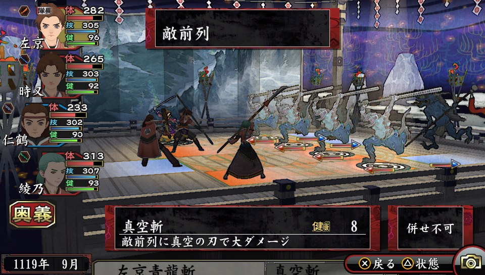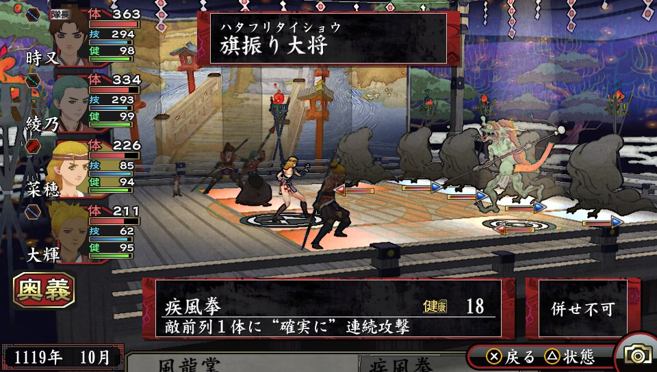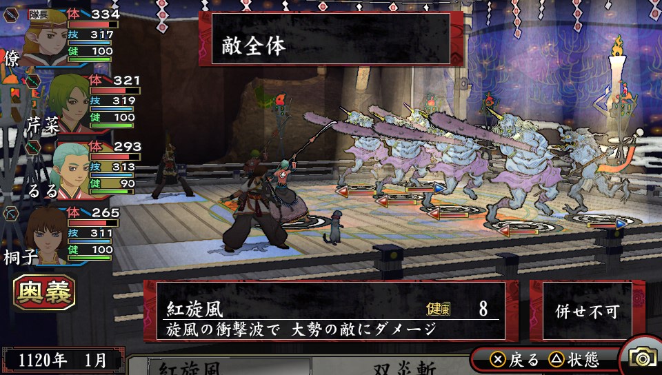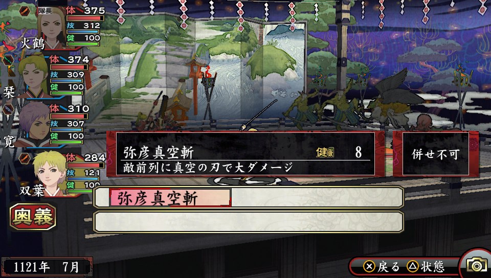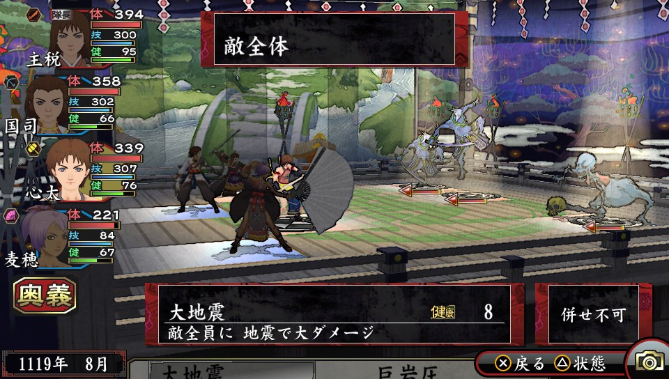 出現珍貴戰利品,不想讓敵方大將逃跑想一網打盡的時,或者想一口氣消耗體力多的鬼神時就可活用術的合併來決勝負。