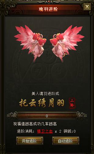 玩家可通過消耗精衛之血來進階美人瑰羽