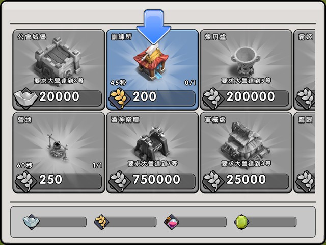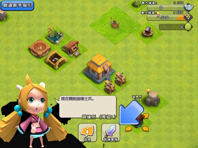 回到主城介面,玩家可以根據新手引導,建立一個「訓練所」,作爲訓練士兵之用。亂世梟雄,要想成就霸業,沒有兵力可不行喔。