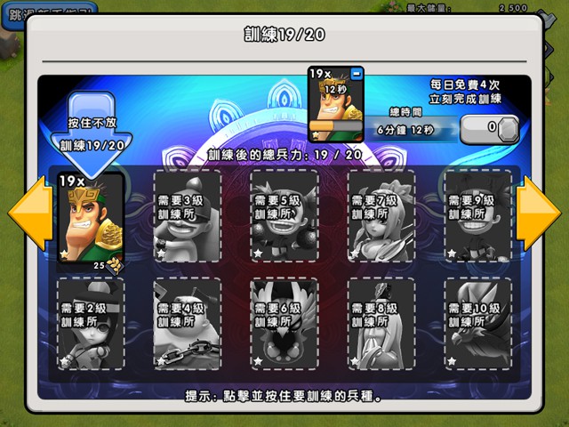 「訓練所」建立之後,玩家就可以馬上開始訓練士兵了。只要訓練好 20 個刀客以後,就可以出征啦。