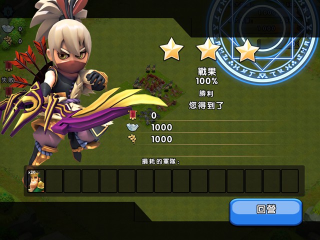 所以,根據各兵種和防禦建築的特性,合理進行搭配,以最少的付出獲得最多的資源才是最完美的勝利。在損耗軍隊的同時,系統會根據摧毀建築的程度,給予玩家獲得聲望、銀兩、糧食和酒。