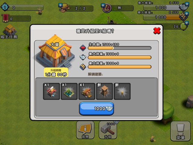 升級大本營獎勵如下: