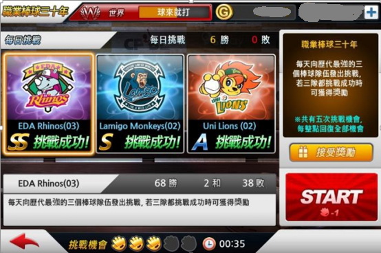 經典隊伍挑戰賽:收集了職棒歷年最經典的隊伍,讓玩家彷彿坐上時光機,率領自己的球隊回到過去挑戰歷代的經典棒球隊伍。挑戰難度越高的隊伍就能獲得越好的獎勵,適合喜歡棒球歷代經典故事的玩家體驗。