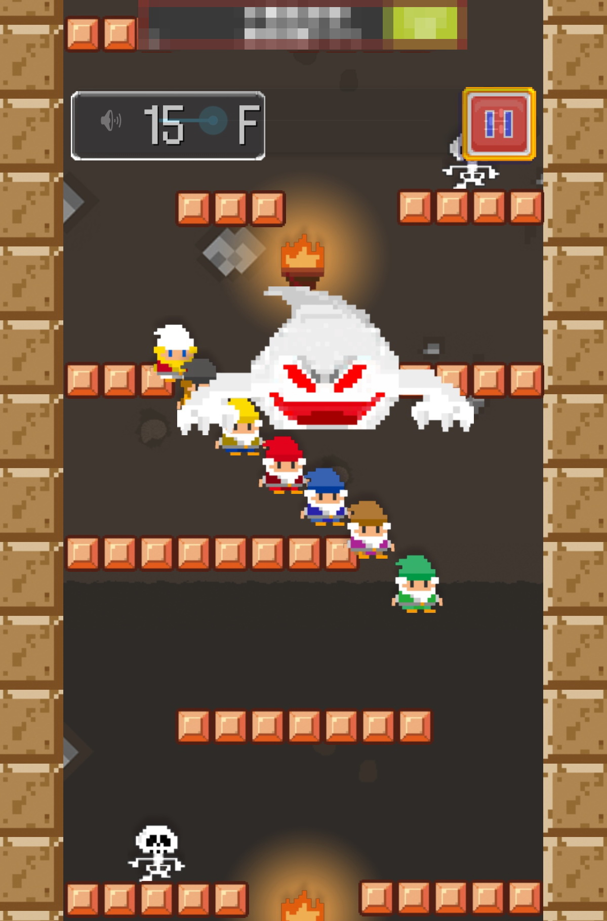 而一路上也會出現各種敵人,雖然接觸到時並不會讓矮人們失去性命,但因為會被纏住一下,所以會讓幽靈更接近矮人。所以玩家要集中精神來迅速的選擇沒有敵人的方向來往下前進。在拼命逃跑的時候,瞬間的判斷力是非常重要的。