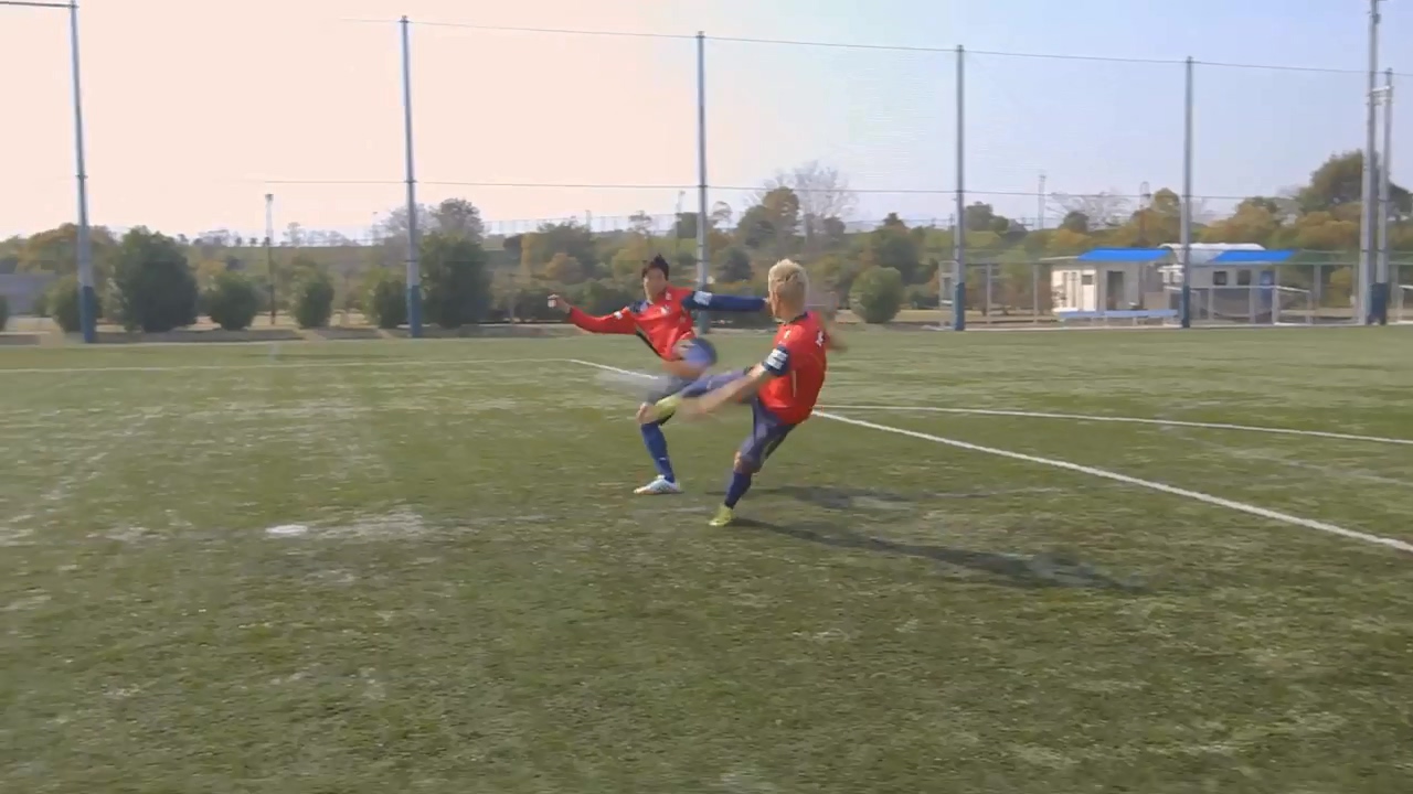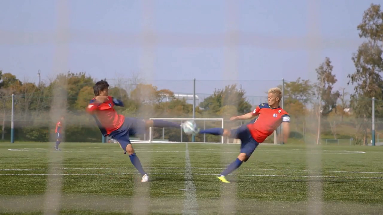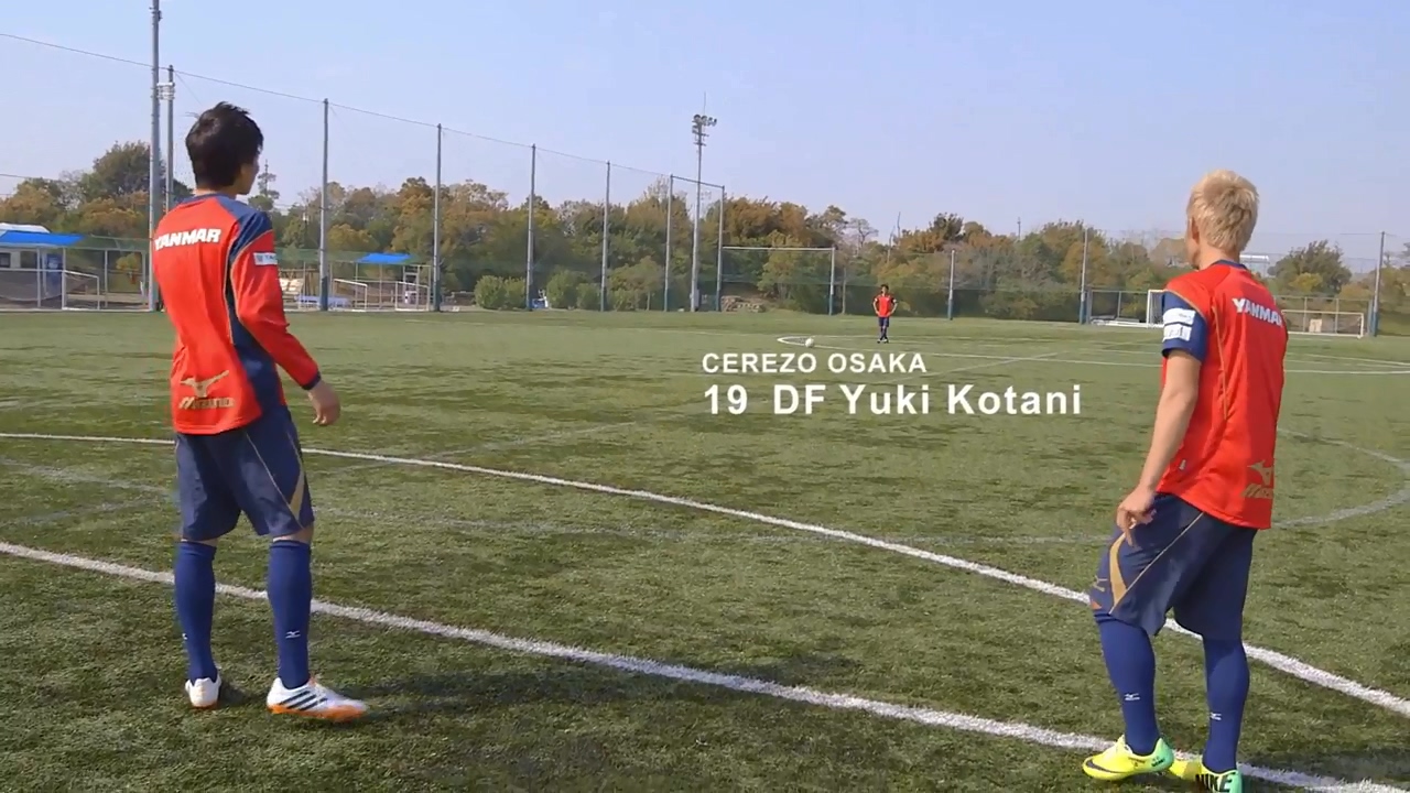 「雙人射門」是在單行本第 6 集中的全日本少年足球大會決勝戰中,由主角大空翼和岬太郎兩人同時射門,讓球以不規則方式旋轉的強力射門。在兩人首次展現這招式後,立花兄弟以及日向和若島津組合也完美使出了這招絕技。這次為了重現雙人射門,請到了大阪櫻花隊(CEREZO OSAKA)的 扇原貴宏、山口螢以及 小谷祐喜三位選手,並且由小谷祐喜送球讓扇原貴宏及山口螢以兩人重現漫畫中經典招式。