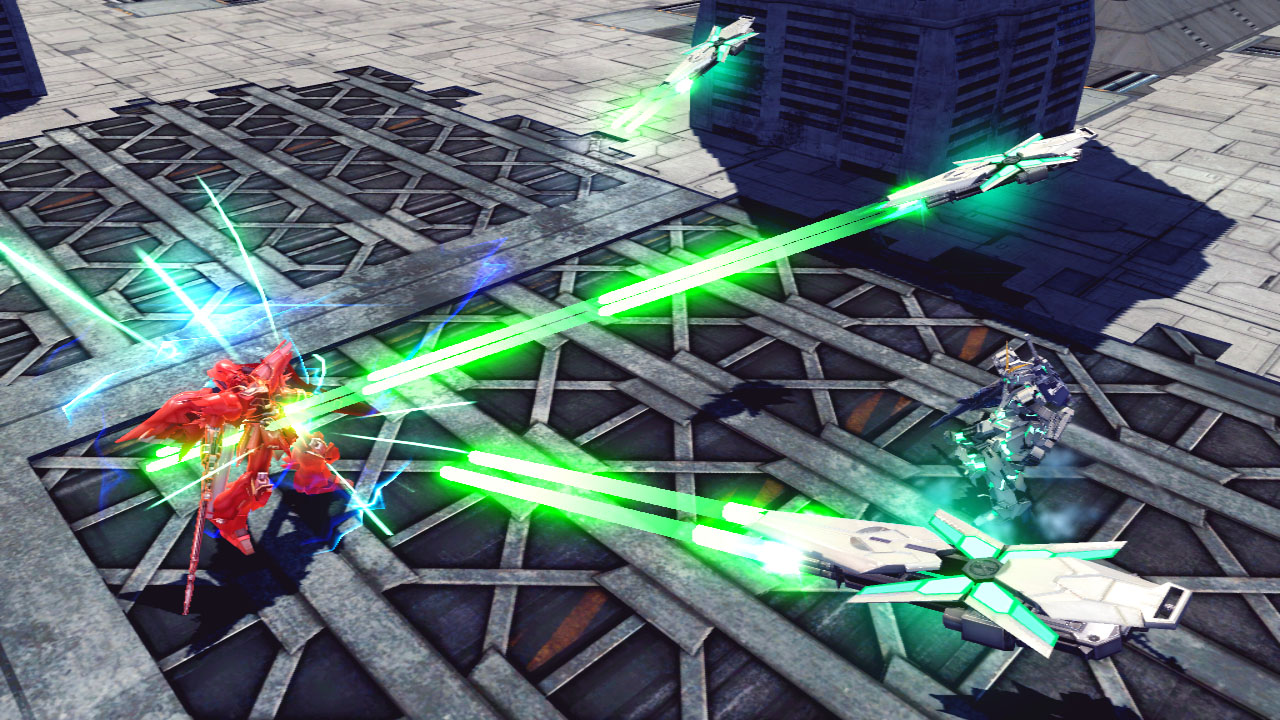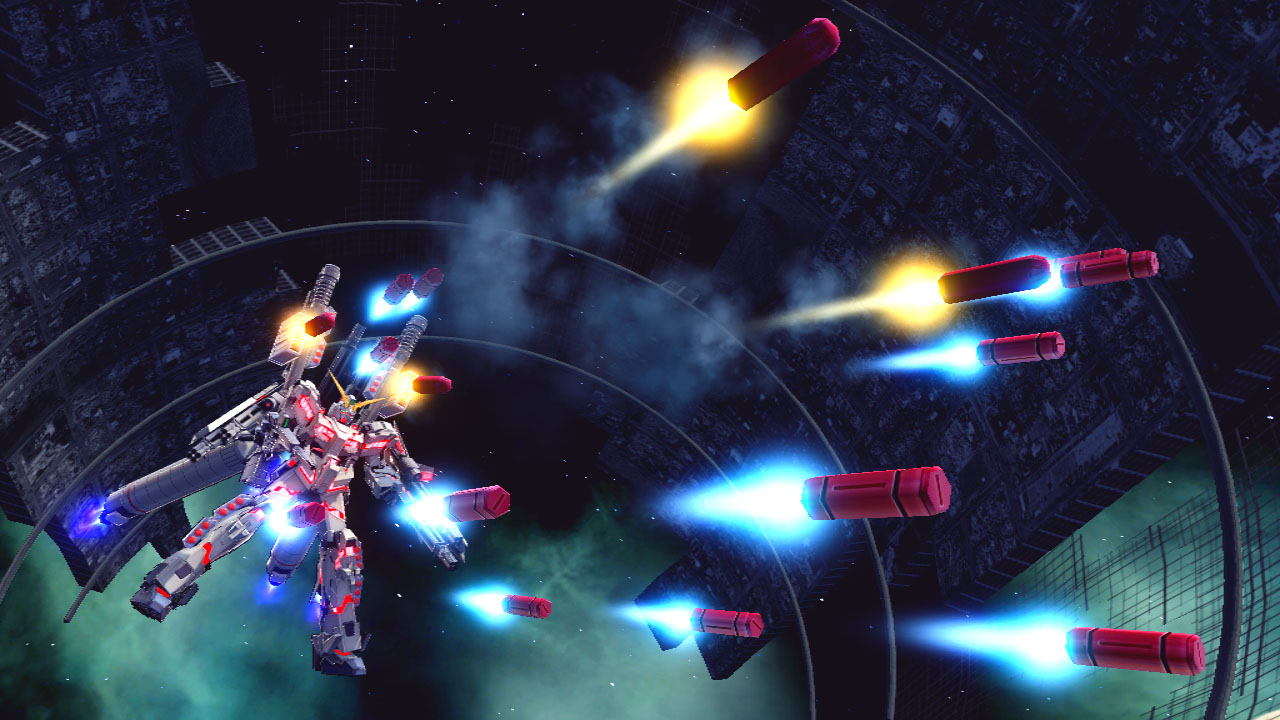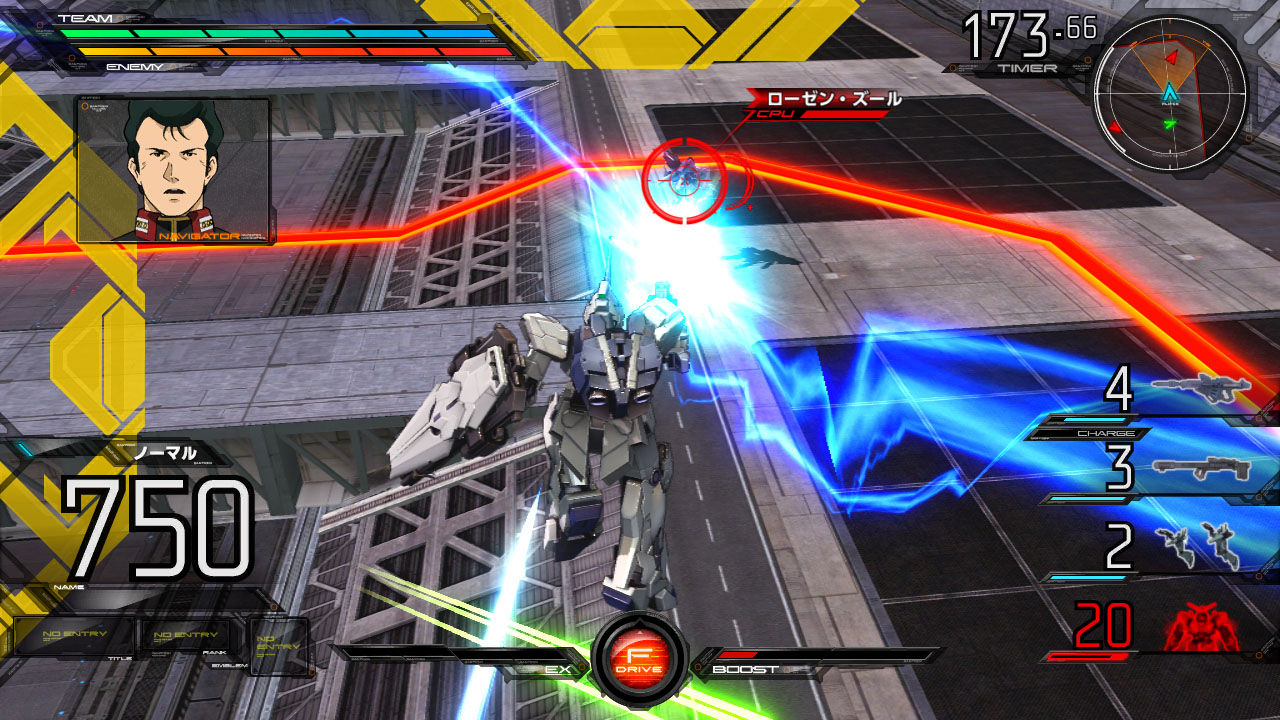 搖桿左右:於當場持續進行側轉、並將大型推進器朝向敵人射出。