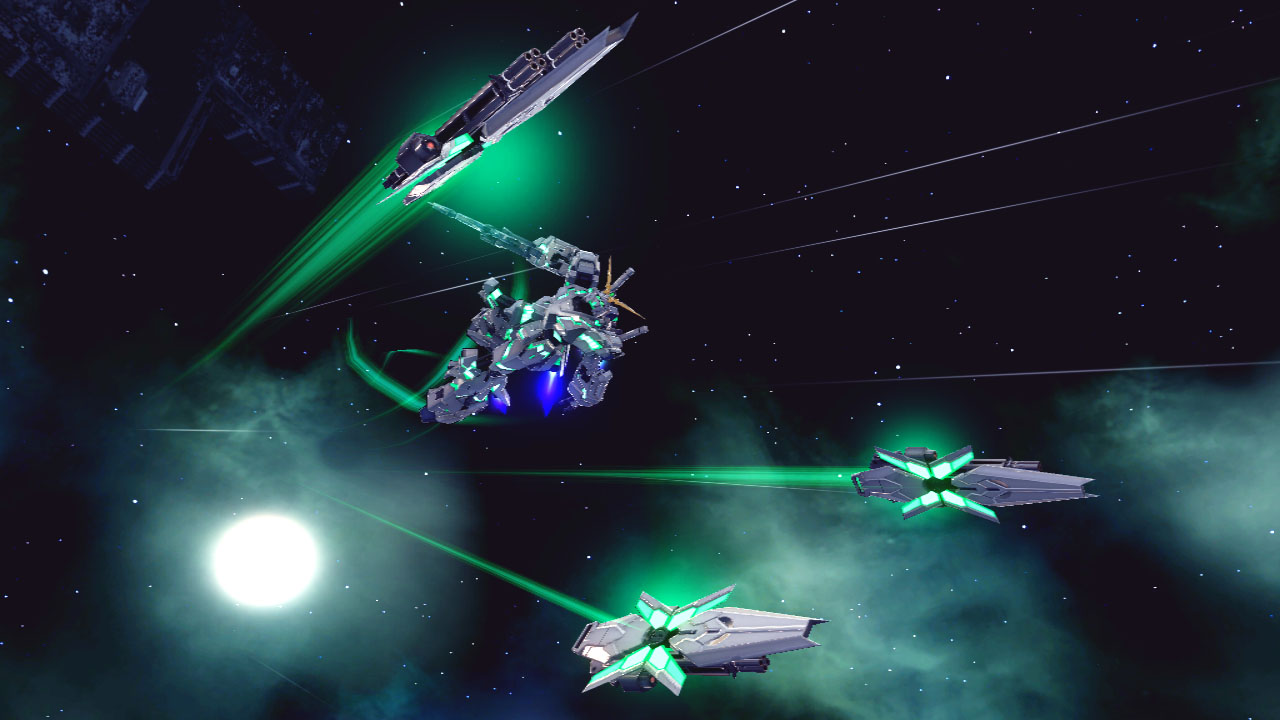 配合戰況將武裝進行分離邊進行戰鬥、獨角獸鋼彈的全新姿態。