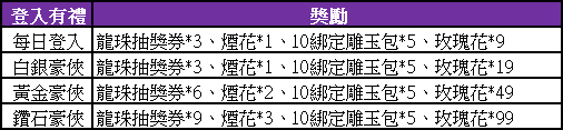 活動時間內,玩家只要每天登陸遊戲即可獲得端午節禮包;各級豪俠還可以額外獲得對應豪俠等級的豪俠端午節禮包。