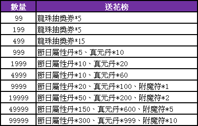 活動時間內,每日接收或贈送的鮮花每達到一定數目即可獲得獎勵。