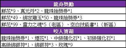正值端午時節,忽然天現靈光,似是屈原英靈受到人間感召,顯花人間,為人間驅除邪氣。英靈不滅,邪氣不侵。拜祭英靈將提高英靈祝福值,同時獲得祝福禮包!英靈祝福值達到3000倍數時,載滿禮物的「龍舟」會在臨安城出現,採集可獲得獎勵哦!此外,活動時間內,每天均會在野外地圖刷新出2波“咬人的寶箱”,玩家擊殺寶箱可以獲得掉落的豐富獎勵哦!擊殺寶箱的時候請小心寶箱噴怒的咆哮技能哦!