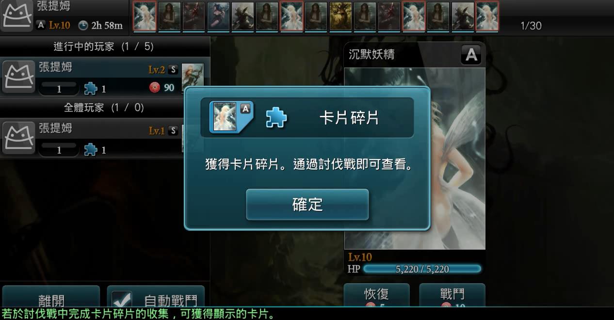 討伐戰必須在有限的時間內要挑戰 30 張不同的卡牌喔!