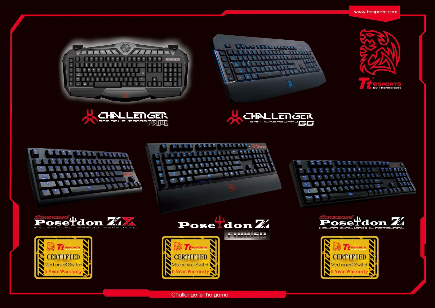 特別為 FPS/RTS/MMORPG 遊戲屬性量身訂作的「波賽頓 POSEIDON ZX 進化精簡版」與首款鋁製髮絲紋路金屬質感設計的「波賽頓 Z Forged 鋁至尊版」;外型更流利、手感更進化的「挑戰者 CHALLENGER Go 全背光」及高規格 LED 可調三色背光模式「挑戰者 CHALLENGER PRIME」