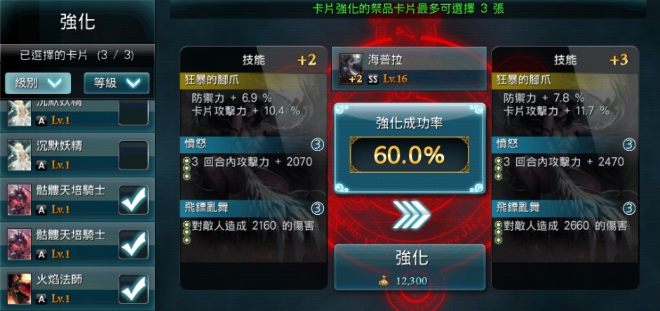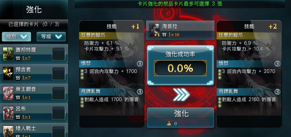 肥料只能選 3 張,如果用 A 級卡片進化失敗機率很高