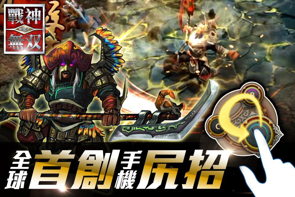 戰神無雙》首創螢幕「尻招」,可連擊十餘招,遊戲以東方成吉思汗史詩為背景,在眾多魔幻系手機遊戲中獨樹一幟。
