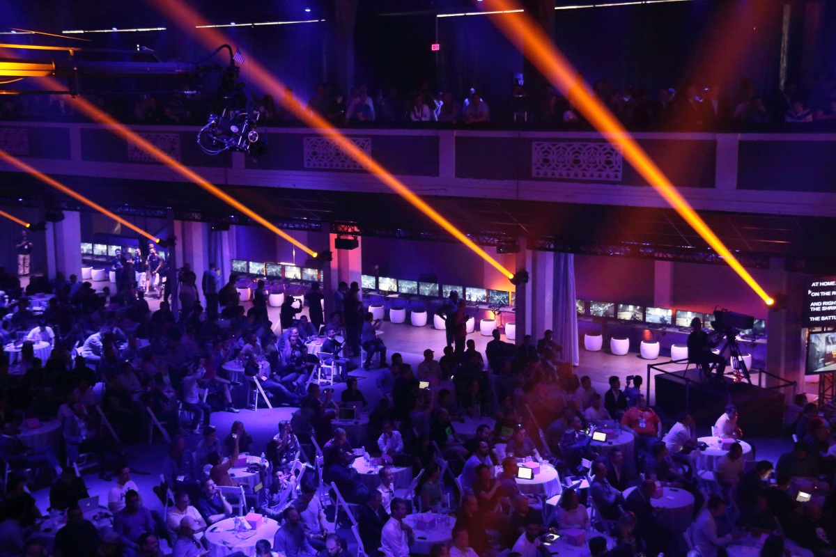 今年的 EA 展前記者會座位不像傳統一排一排的格局,而是擺放了圓桌,桌上還擺放了甜甜圈,並提供飲料供現場的人享用,營造出較為輕鬆的派對氛圍。
