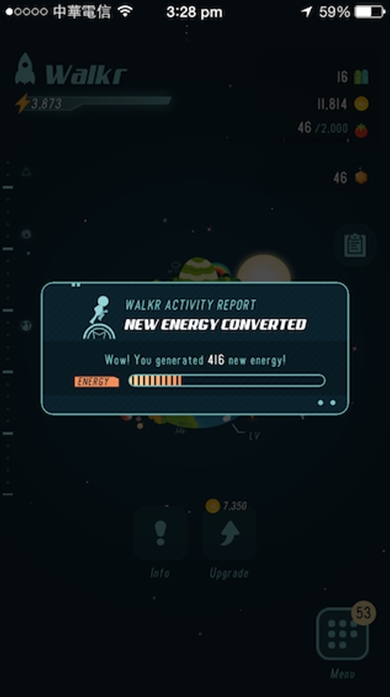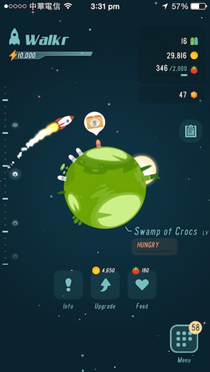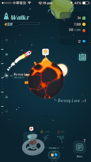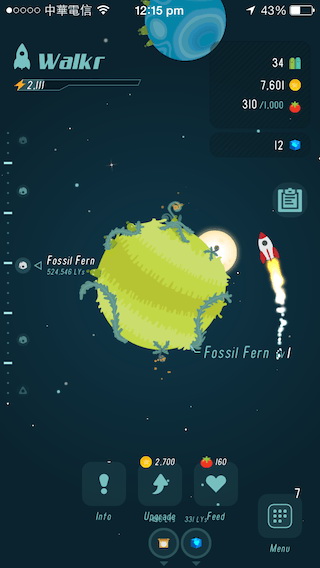 本作最特別的一點可以透過走路累計的「走路能量」,只要玩家把手機放在口袋裡行走,太空船 Walkr 就會自動把玩家的每一步都轉換成能量,讓太空船可以飛得更快更遠。遊戲中 Walkr 還會自動幫你計算卡洛里消耗量,也算是一款可以一邊玩一邊減肥(無誤)的夏日作品。
