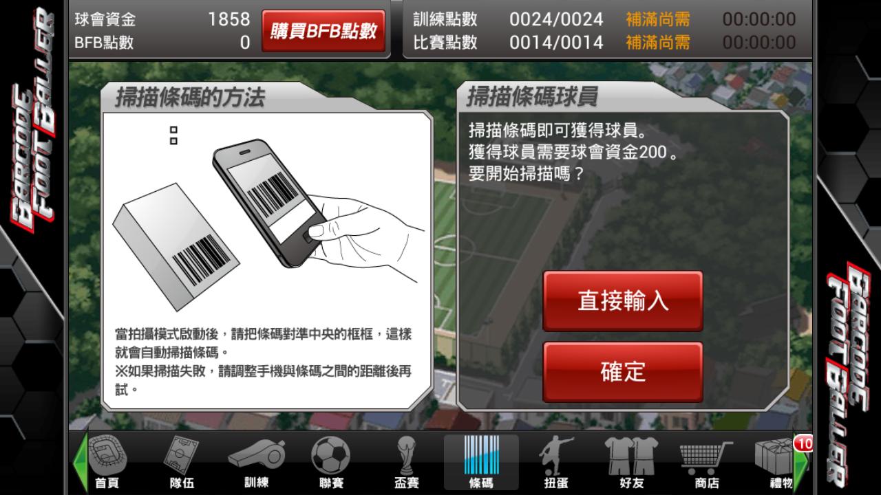 《BFB》手機育成足球遊戲,可藉由讀取各類商品條碼(Barcode),輕鬆獲得球員,玩家需扮演領隊角色,集合各個足球選手組成自己的專屬球隊,育成球員、訓練球隊,並充分運用智慧及戰術擊敗其他隊伍,邁向最頂級的聯賽,目標成為世界第一!