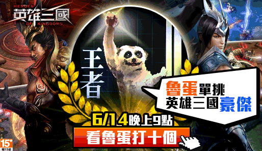 《英雄三國》為迎接不刪檔封測,6 月 14 日至 22 日「幫派」創立條件大幅降低,只要 2 名玩家攜手組隊,隊伍中其中一名玩家的於活動期間「累積 PVP 勝場數達 30 場」;而另一名玩家通過副本關卡「月下救貂蟬(普通)」,兩人個別完成後再交付指定材料給 NPC,就可以搶先當「幫主」。為了讓更多玩家了解《英雄三國》,封測當天將邀請知名人氣遊戲實況主魯蛋搶先開播,日後也將有更多實況主一同加入精彩遊戲實況轉播。