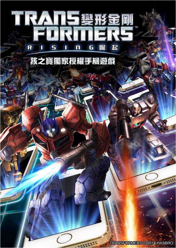 由 DeNA 自製研發、美國孩之寶正式授權的卡牌 RPG 手機遊戲《變形金剛:崛起》官方今日首度公開繁中版推出計劃,宣佈遊戲將在今年暑假於台港澳地區上市與玩家見面,並預計在《變形金剛 4:絕跡重生》電影上映期間與台灣孩之寶、國賓影城舉辦一系列變形金剛粉絲募集活動。