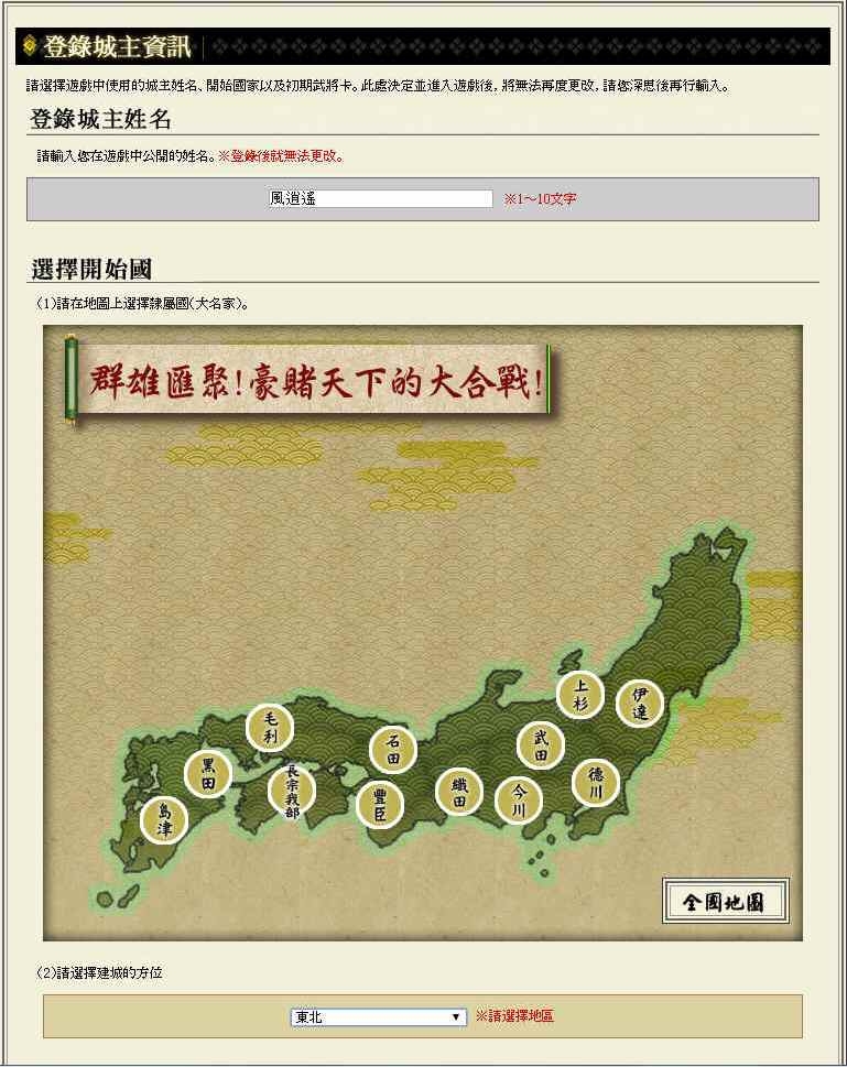 每一位大名都是日本戰國時代赫赫有名的人物,就算對日本戰國史不是那麼熟悉的人,應該也都聽過他們的名字吧?在決定好自己的主公以及城池想要座落的方位後,接著就要選擇領地,而《