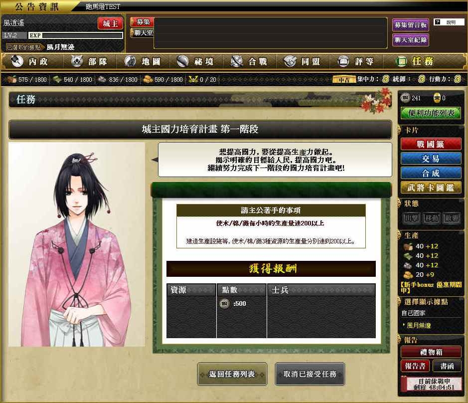 任務是我們獲得資源、兵力的一個很重要管道喔!