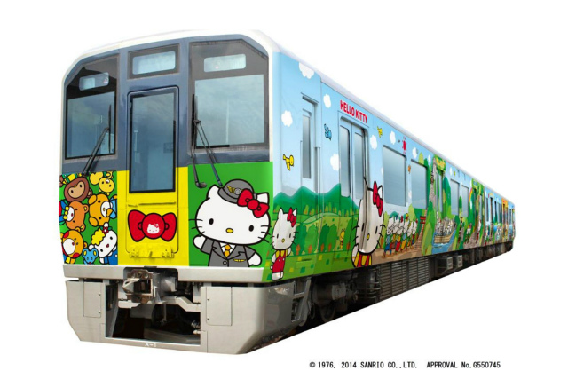 作為 JR 西日本吸引遊客的政策之一,這次他們與 Sanrio 旗下人氣角色「Hello Kitty」合作,推出了觀光列車,列車上的 Hello Kitty 除了會穿上 JR 鐵道員的制服外,還會穿上日本平安時代的傳統服裝,並在車體塗裝上結合當地特色。