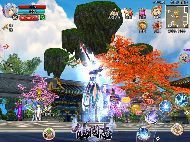 《仙國志》所呈現出的 3D 畫面由自主研發引擎加持,流暢平順,不耗資源。遊戲開闊的全 3D 自由視角,360 度無死角操控體驗,搭配唯美空靈的畫風,全面展現了《仙國志》令人驚艷的恢弘世界。