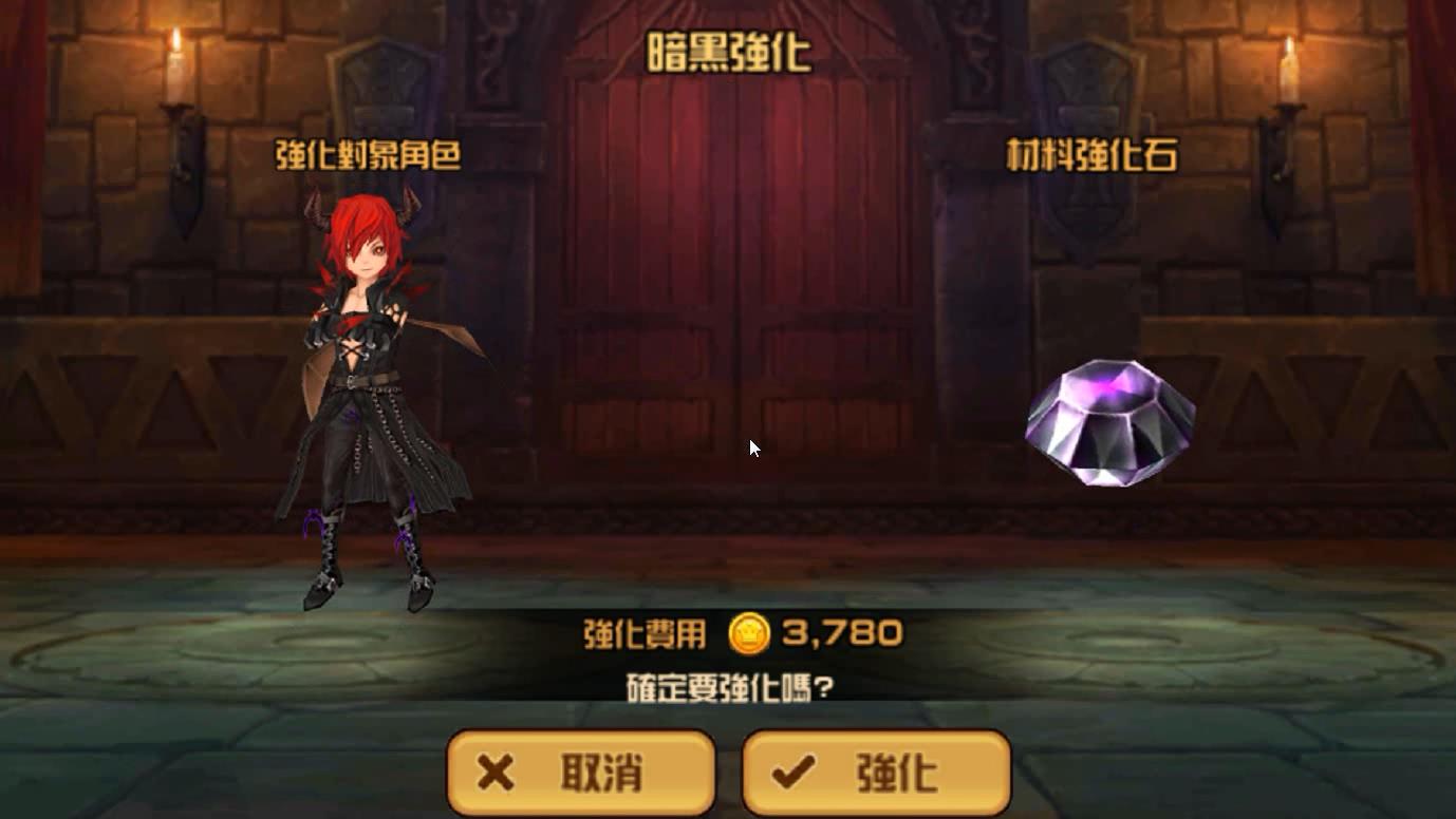 不同等級的魔物角色,能使用的「暗黑強化」次數也有不同的限制,若魔物已經達到該等級限制的次數時,就會無法再進行強化功能了!要請玩家特別注意喔!