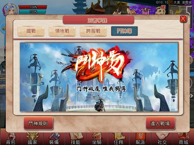 跨服戰只有各個伺服器的“天下皇帝”可以發起,特有的強弱判定將戰鬥平衡化,120 分鐘的競賽考驗著玩家對職業搭配以及走位技巧。