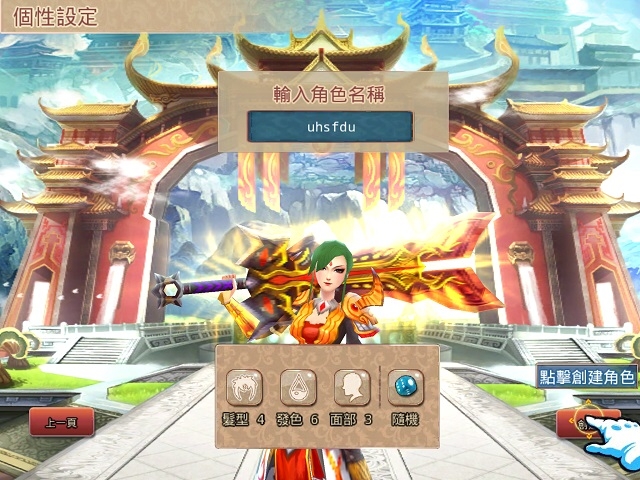 在沒有正式創建角色前,還能返回前面重新選擇國家與職業。個性選擇內可以隨意選擇人物的髮型、髮色和面部表情。如果不想一個一個的選擇,也可以用按鈕來讓系統隨機搭配人物的外貌,可以一直隨機到滿意為止。