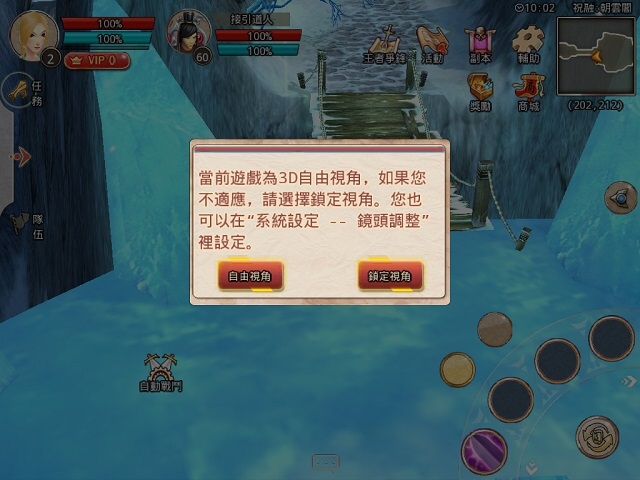 進行過人物個性設定之後,就真正進入遊戲了。遊戲內的畫面有 360°的自由視角,不用局限於斜 45 度視角,而且在遊戲設定內還能鎖定自訂視角,讓玩家選擇習慣的遊玩方式。