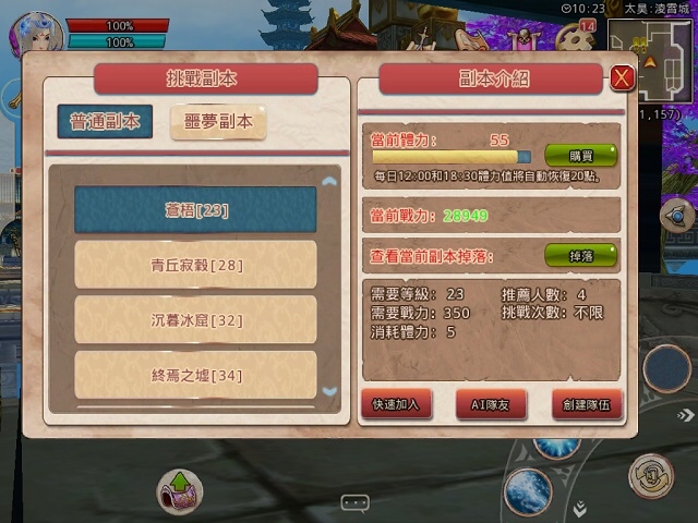 “副本”概念是遊戲中不可或缺的元素,是對玩家實力的一種考驗,往往藏匿著豐厚的獎勵。遊戲副本分為普通、噩夢兩種模式,隊伍人數上限為 4 人,在玩家等級、戰力上根據難度不同具有相應限制。玩家可自行【創建隊伍】發起招募,也可點擊【快速加入】,進入正在戰鬥中的副本。