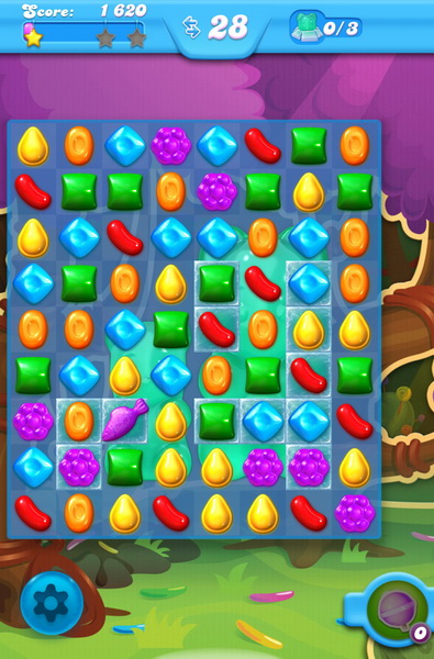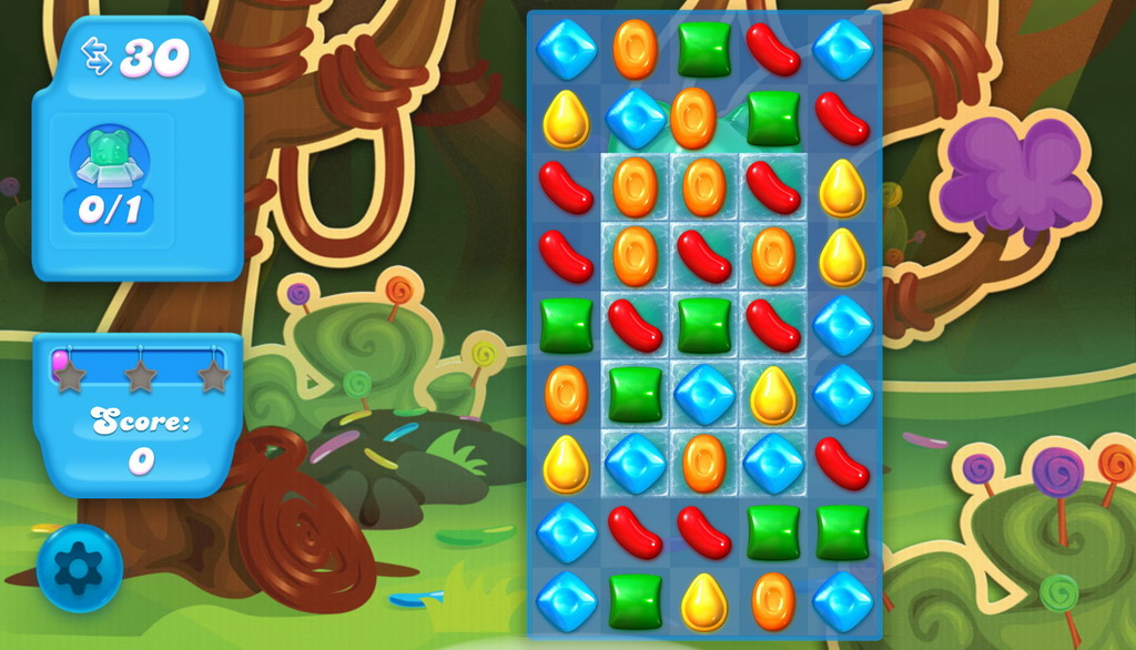 消除鋪在冰塊上的糖果來敲碎冰塊,就可讓藏在裡面的軟糖熊出現