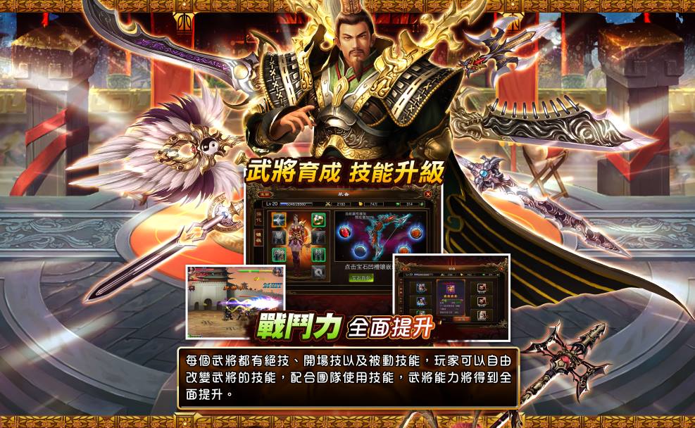每個武將都有專屬的絕技、開場技與被動技能,玩家可以依照團隊的需求,自行洗鍊武將的技能,達到整體能力的提升。