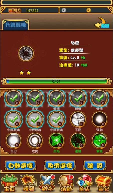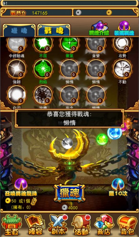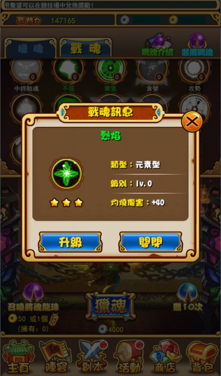 遊戲中戰魂也可升級,只要吸收用不到的將魂就可增加經驗值、提高加成屬性
