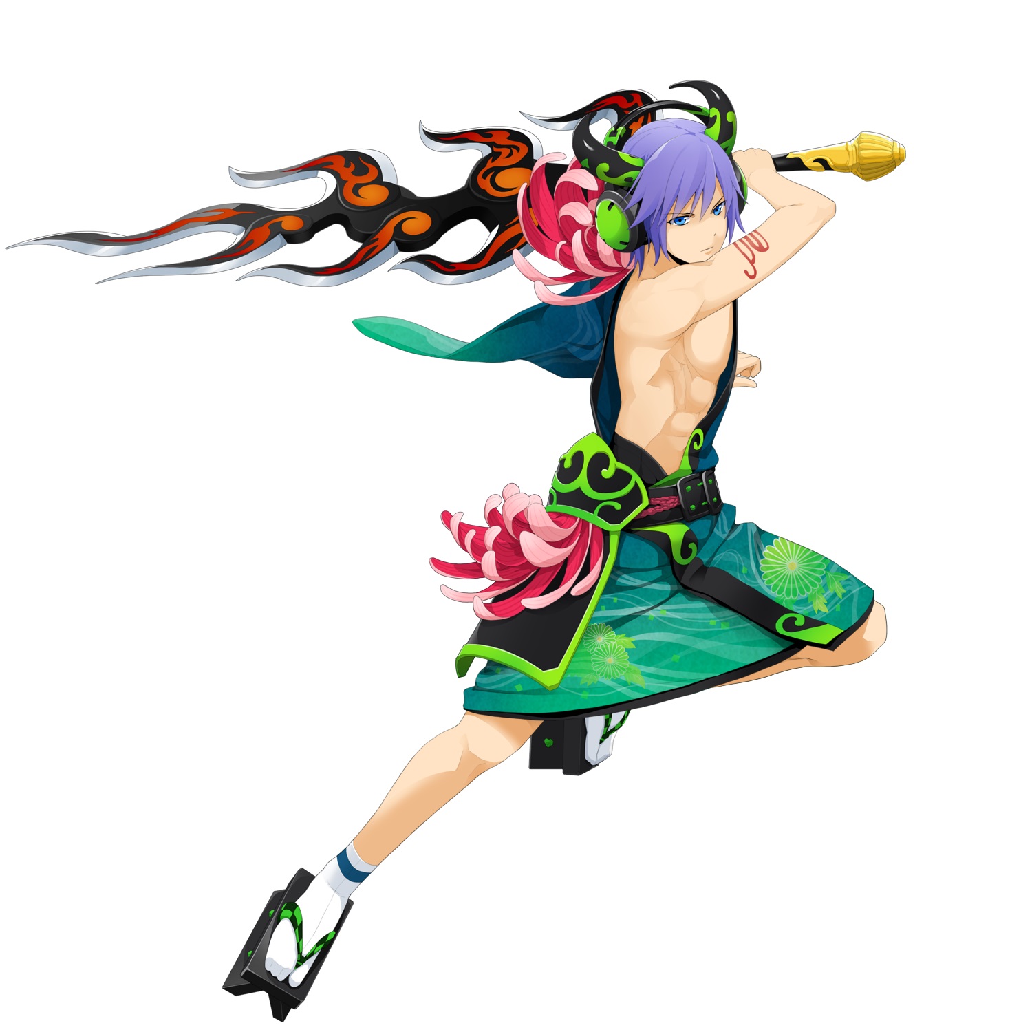 過去曾是以打鬼而聞名的英雄。在漫長的歲月裡,持續的與鬼族征戰、廝殺,不知不覺間就成了只要一發現鬼族,就會不由分說、直接將之斬殺的修羅。現在生活的重心只有消滅鬼、提昇自身的實力還有蟲先生。也喜歡青蛙先生或蜥蜴先生,不過很討厭貓,別過來、走開啦。