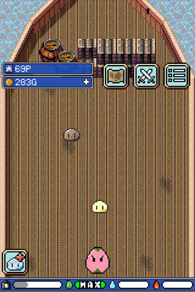 所以玩家除了要改變屬性來與通緝單上的勇者戰鬥之後,還要顧慮有錢勇者的屬性才行,如果來不及改的話,也可以透過使用金幣來快速的吸收其他屬性的小史萊姆來加速進化。