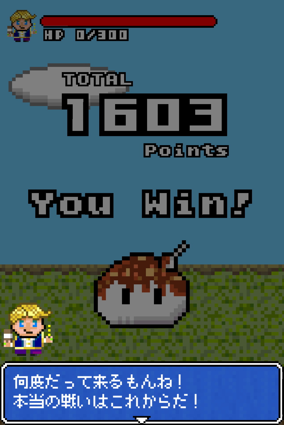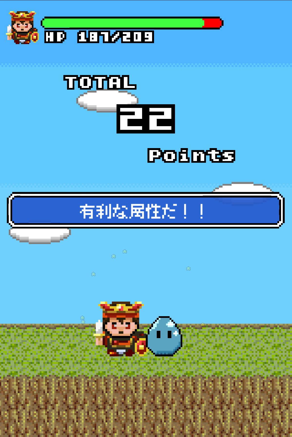 本作的戰鬥系統很簡單,一開始史萊姆會自動攻擊勇者 3 次,接著玩家只需抓準時機按下跳躍鈕即可。只要跳躍時機抓得好就能夠給予勇者越多的傷害,只要在此時能夠打倒勇者的話就獲得勝利了,不過要是時機抓得不好,或者傷害不夠的話就反而會被勇者反擊打倒喔。