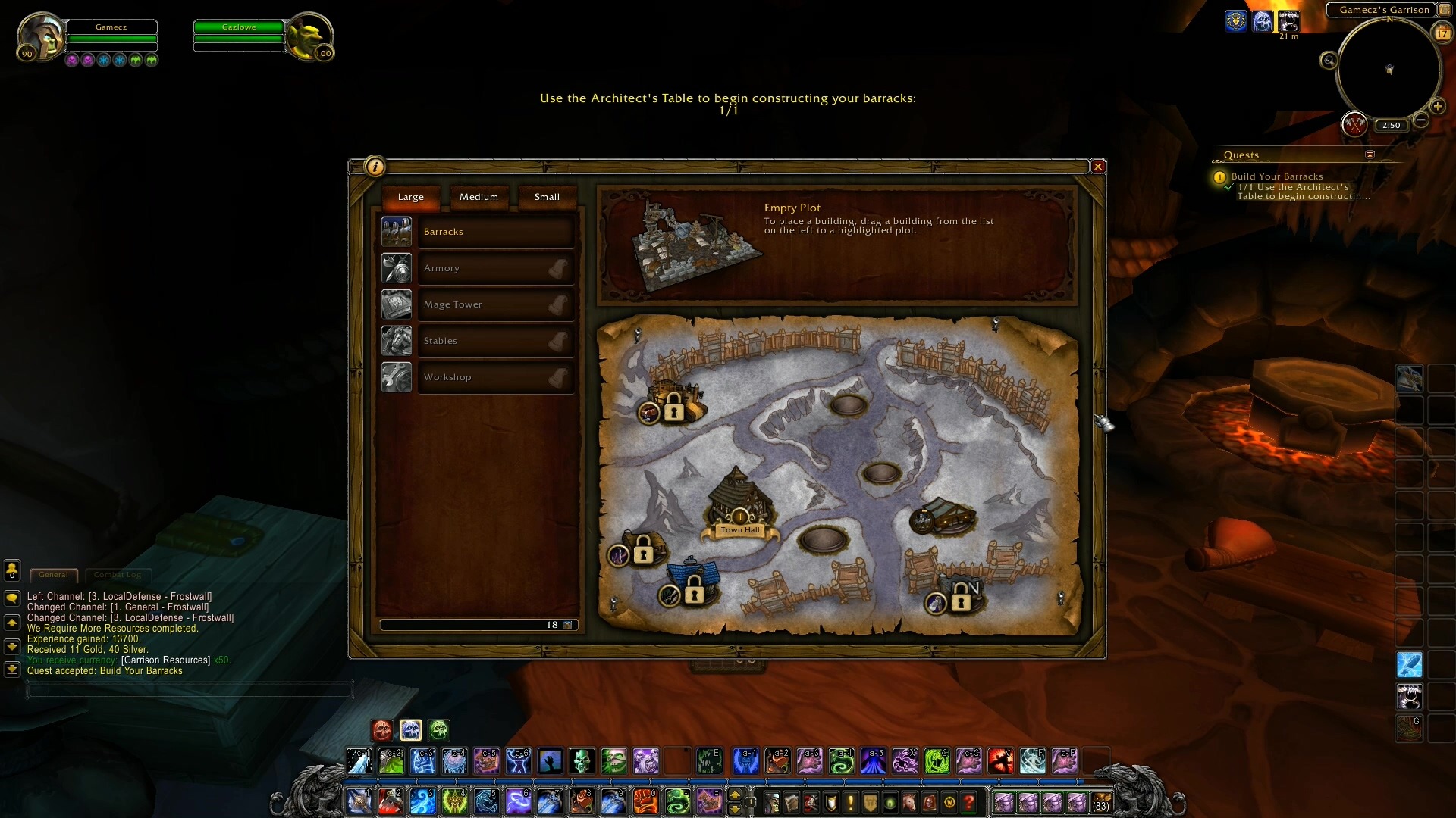 另一個需要的就是藍圖,只要具備了這兩個條件,就可以透過要塞建築師「加茲魯維」(部落陣營)前的小桌子開啟要塞的建設畫面建立指定的建築。