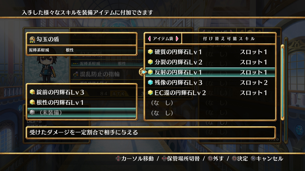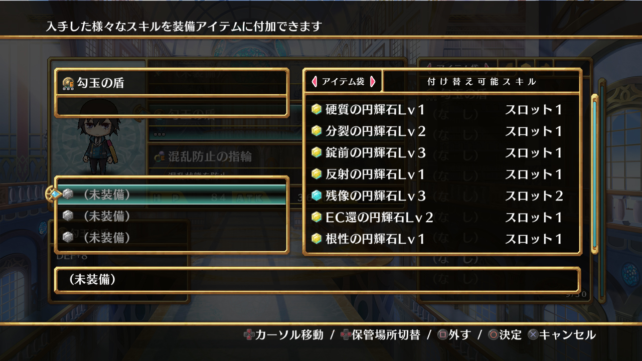 想將 “技能結晶” 鑲入武具、必須從各項裝備畫面下來進行。