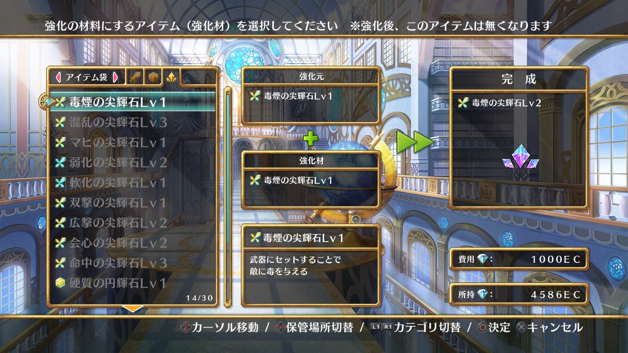 技能結晶與武具相同、結晶之間也能夠相互融合後予以強化。