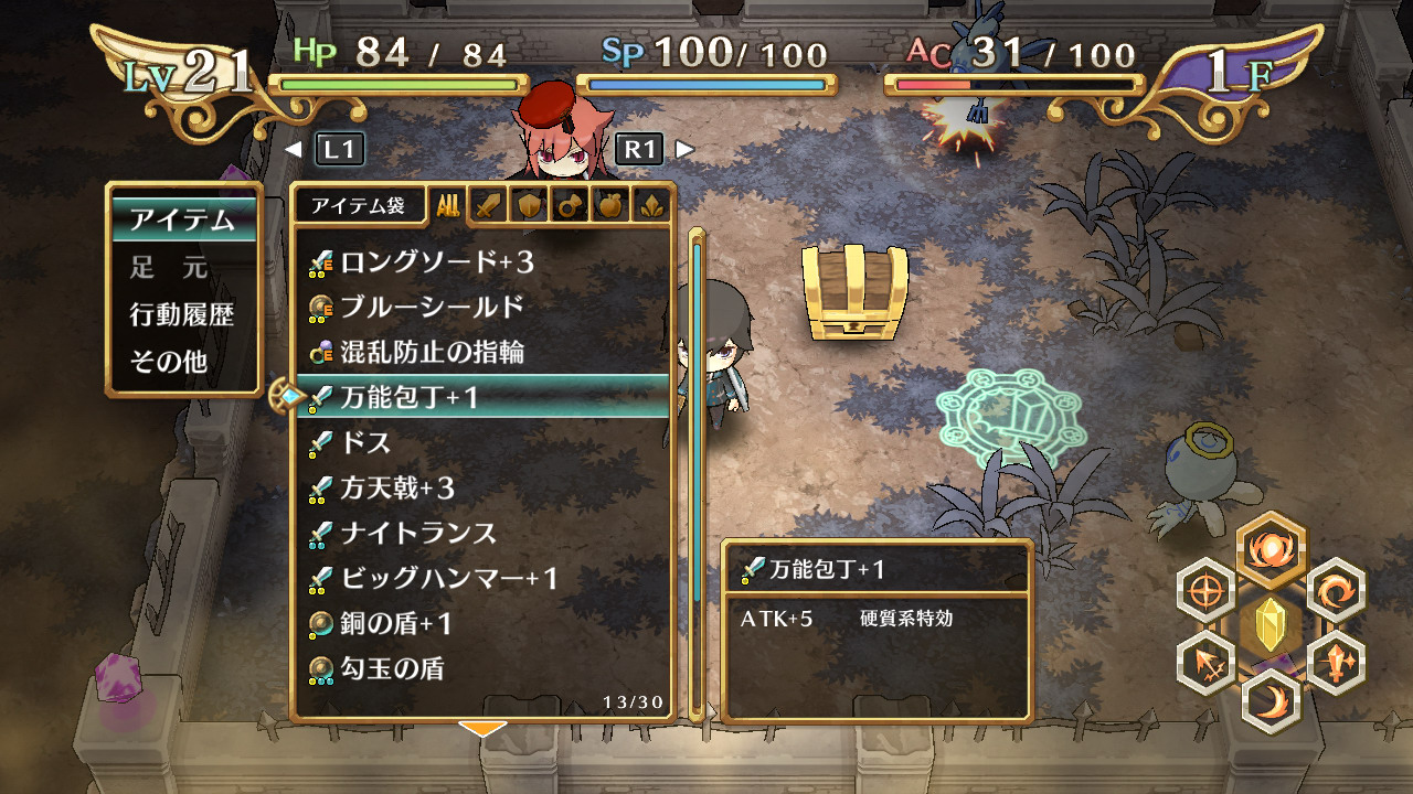 在潛入迷宮時、藉由準備『強敵專用』『防禦重視』『迴避陷阱用』等、複數的強化武具,可對應各種狀況來選用武具。