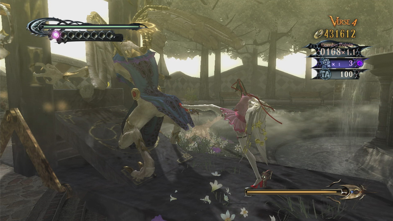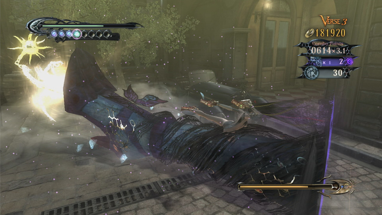 在舉辦著遊行十分熱鬧的街上,突然出現的天使們開始襲擊人們。魔女蓓優妮塔(ベヨネッタ)使用著魔界之力與其對抗,但就連召喚出來的魔獸哥摩拉也失控,並襲擊了蓓優妮塔。與其一同戰鬥的魔女貞德(ジャンヌ)於千鈞一髮之際將她從危機中救出,但為了袒護她而受到了致命傷,其靈魂被吸入了魔界。