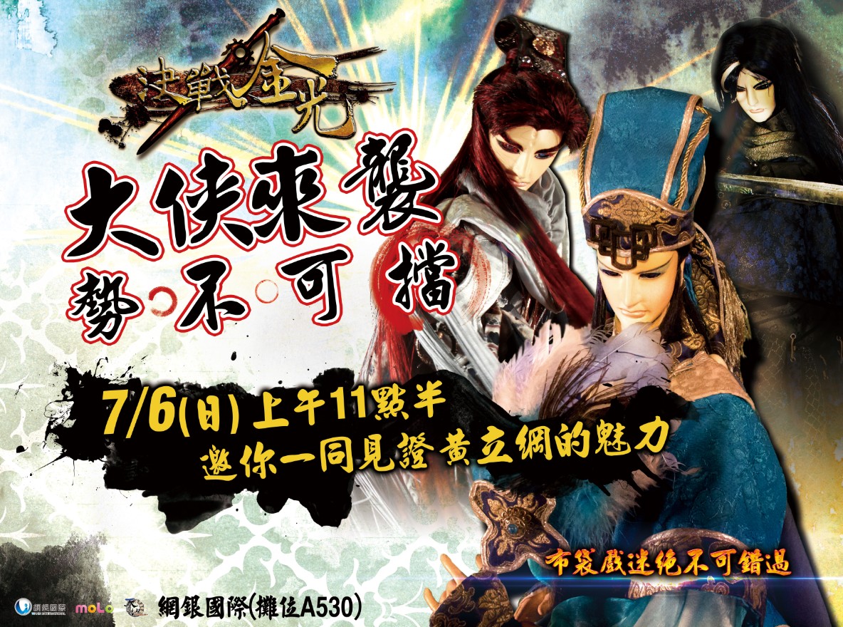 擁有布袋戲大俠之稱的黃立綱,將於 2014 年 7 月 6 日 11:30-12:30 蒞臨現場與戲迷做進一步互動,並當場送出黑白郎君戲偶一尊喔!熱愛布袋戲的玩家絕不可錯過!