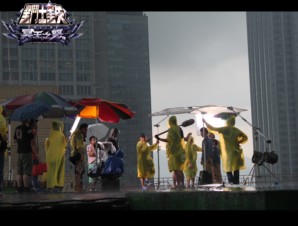 頂著午後超大雷雨 廣告團隊仍冒雨力求最好拍攝成果