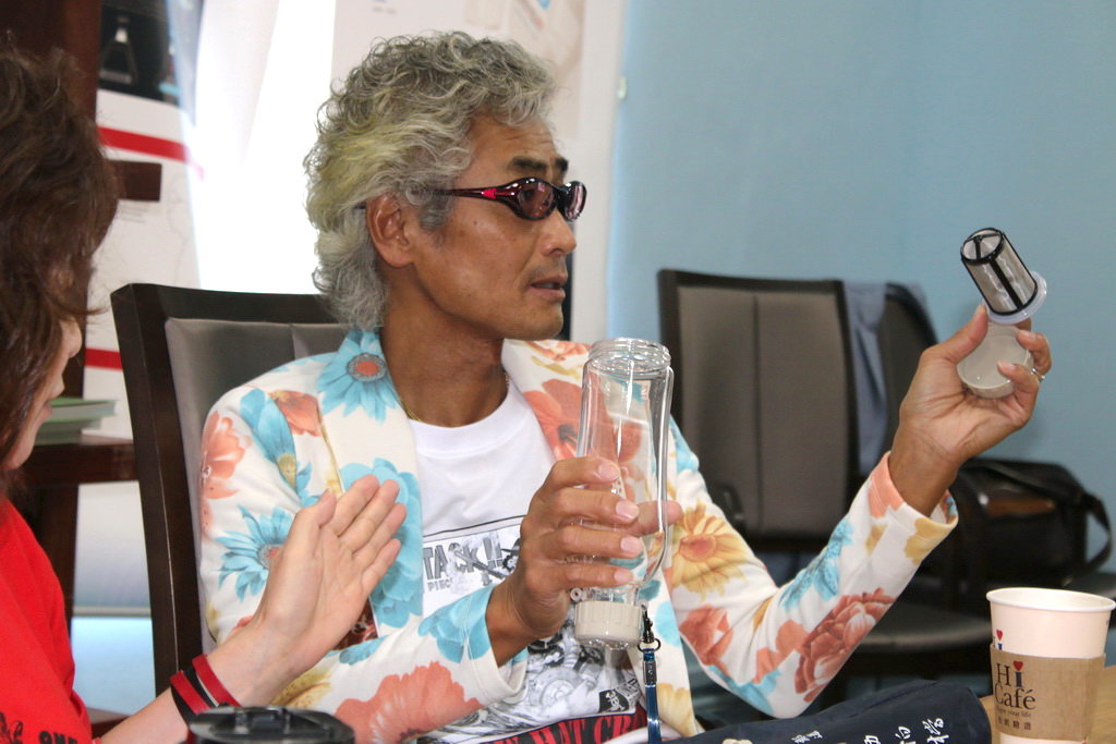 矢尾: 晚上有很多年輕的小女孩呢、也教了我很多中文(笑)。另外這次來了台灣也吃了小籠包等美食,都相當好吃。 還有就是台灣的茶,我們這次也去了專賣茶葉的店,台灣的茶有很多種類,我們去的店裡那位老闆娘很厲害,就跟跟電視購物一樣不斷地拿出各式各樣的東西。也跟我們說明了茶葉會根據山的高度不同、烘焙的方式不同,茶的味道就不一樣。而且一小匙的茶葉居然可以回沖 20 到 30 杯左右,才開始覺得真的味道淡了,真的很划算,也真的很好喝。 那時候也買了一個名為「Travel Buddy」的攜帶式茶杯,可以把茶葉放進去隨身攜帶。 我買了 9 個,因為草帽一行 9 人有些人不能來台灣,所以這是我要買要給大家的禮物(展示)。